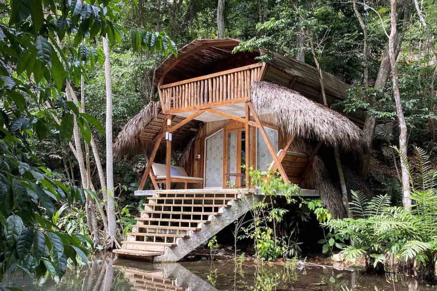 Cada tienda de Shinta Mani Wild está separada a suficiente distancia una de otra para que la privacidad sea máxima y donde la decoración con antigüedades recrea una atmósfera colonial, mientras que el salón y la amplia terraza sobre el río nos adentran de lleno en la selva sin salir de nuestra zona de (máximo) confort. Podríamos pasar sin salir de la tienda durante toda nuestra estancia pero el plan de actividades resulta demasiado tentador como para obviarlo. Hay la opción de salir con un kayak aguas arriba y, donde el río forma un estuario, nos esperarán en la orilla cocinando a la barbacoa un enorme cangrejo.