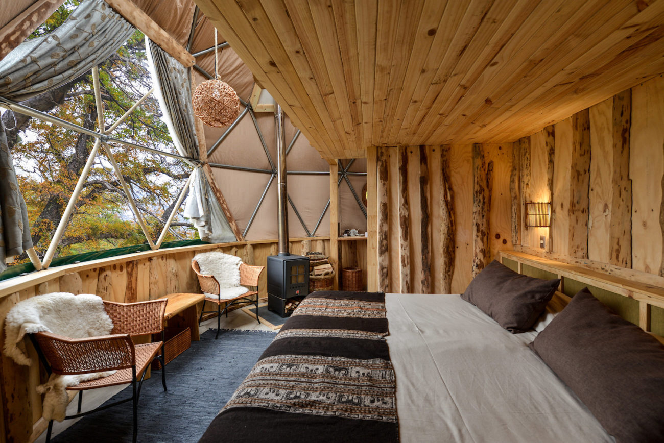 Desde su apertura en 2001, este complejo de cúpulas geodésicas –que presume de haber sido el primero de este tipo en el mundo– ha ganado diversos premios gracias a su arriesgado diseño y su apuesta por la sostenibilidad. Con sus suelos de madera, sus estufas con bajo nivel de emisiones y su decoración inspirada en el arte de la tribu patagónica kaweskar, harán que sintáis la autenticidad del entorno de inmediato.
