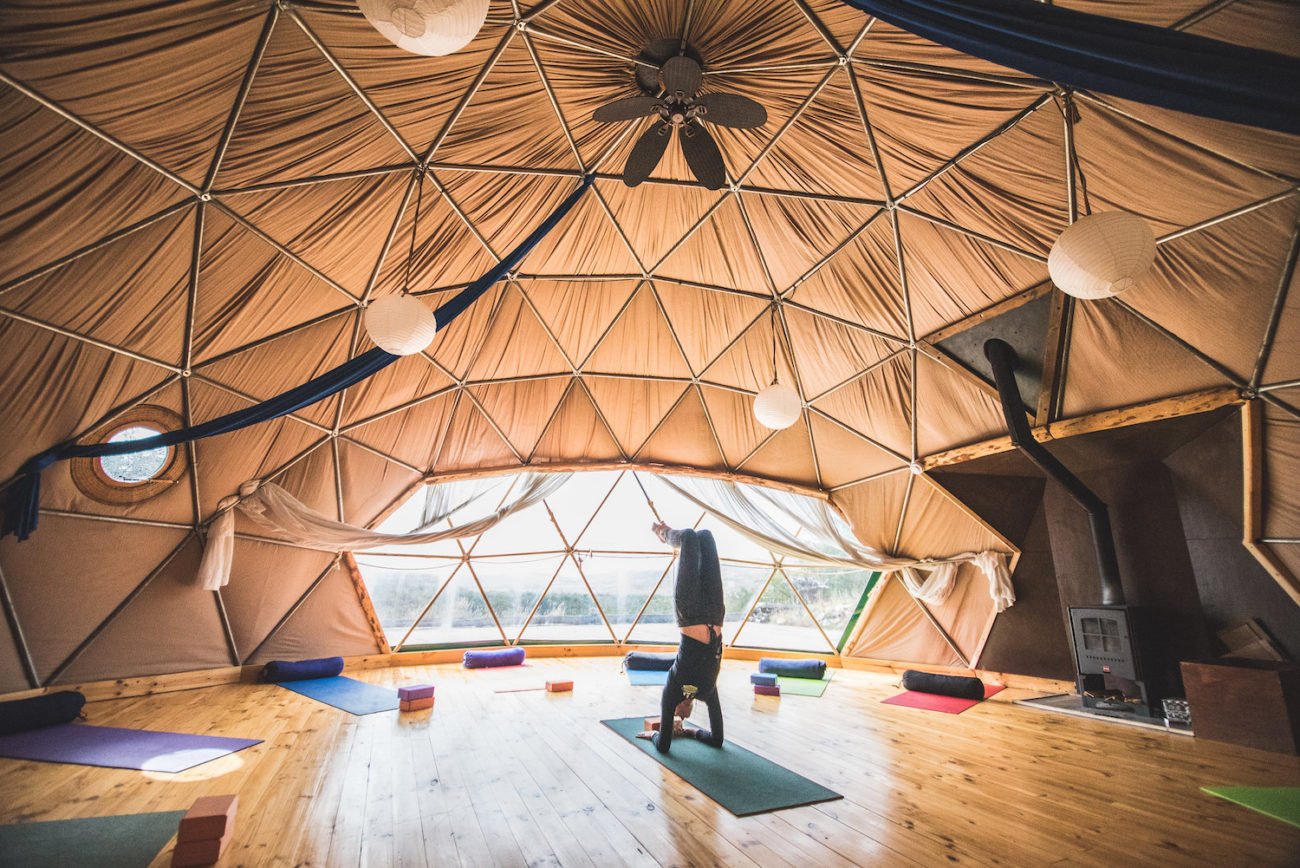 Las cúpulas geodésicas se inspiran en un modelo de arquitectura creado por el arquitecto Richard Buckminster Fuller en los años 40 como un modelo de máxima eficiencia constructiva (se usan de modelo para viviendas en la Luna y Marte). En este caso se componen de triángulos recubiertos de tela y la energía la obtienen de un panel solar, un calentador de propano y una estufa de leña. Disponen asimismo de un depósito de compost para reciclar los desechos y los materiales son de madera certificada y tejidos naturales. Se elevan sobre la tierra para crear un aislante natural y están conectadas entre ellas por pasarelas de madera que «vuelan» sobre la floresta.