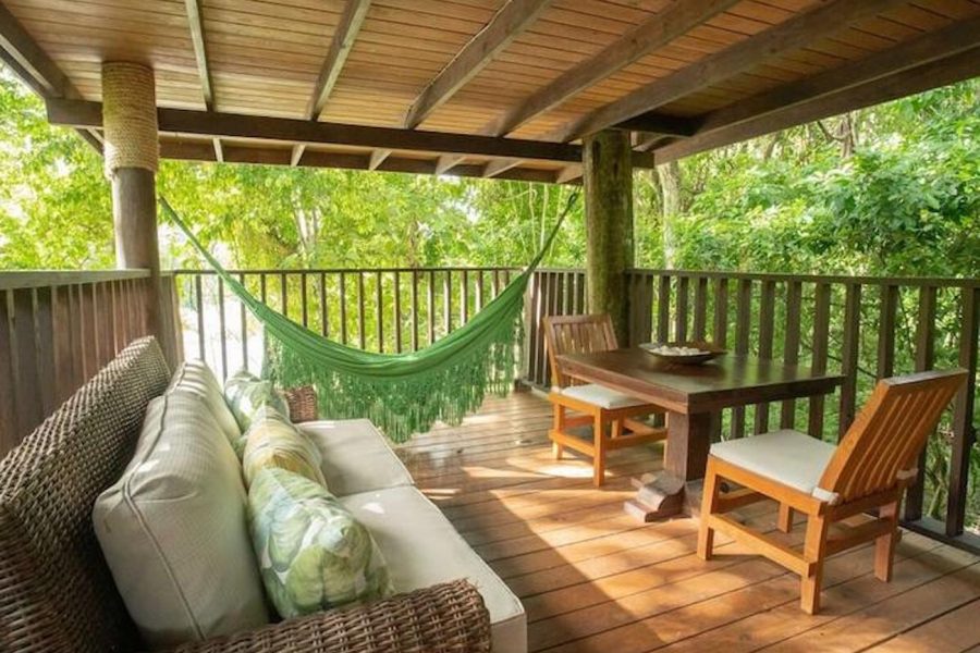 Lo componen 8 cabañas, incluida un ‘tree house’ de doble altura ideal para familias (su capacidad es para 6 personas, al igual que los bungalós 4 y 5). Techadas con hoja de palma y revestidas de madera, son espaciosas, cuentan con una terraza privada y las camas están protegidas con mosquiteras. Nada les falta y nada les sobra. El baño es semiabierto, por lo que tienes la sensación de estar duchándote en plena selva, que te arropará por las noches.