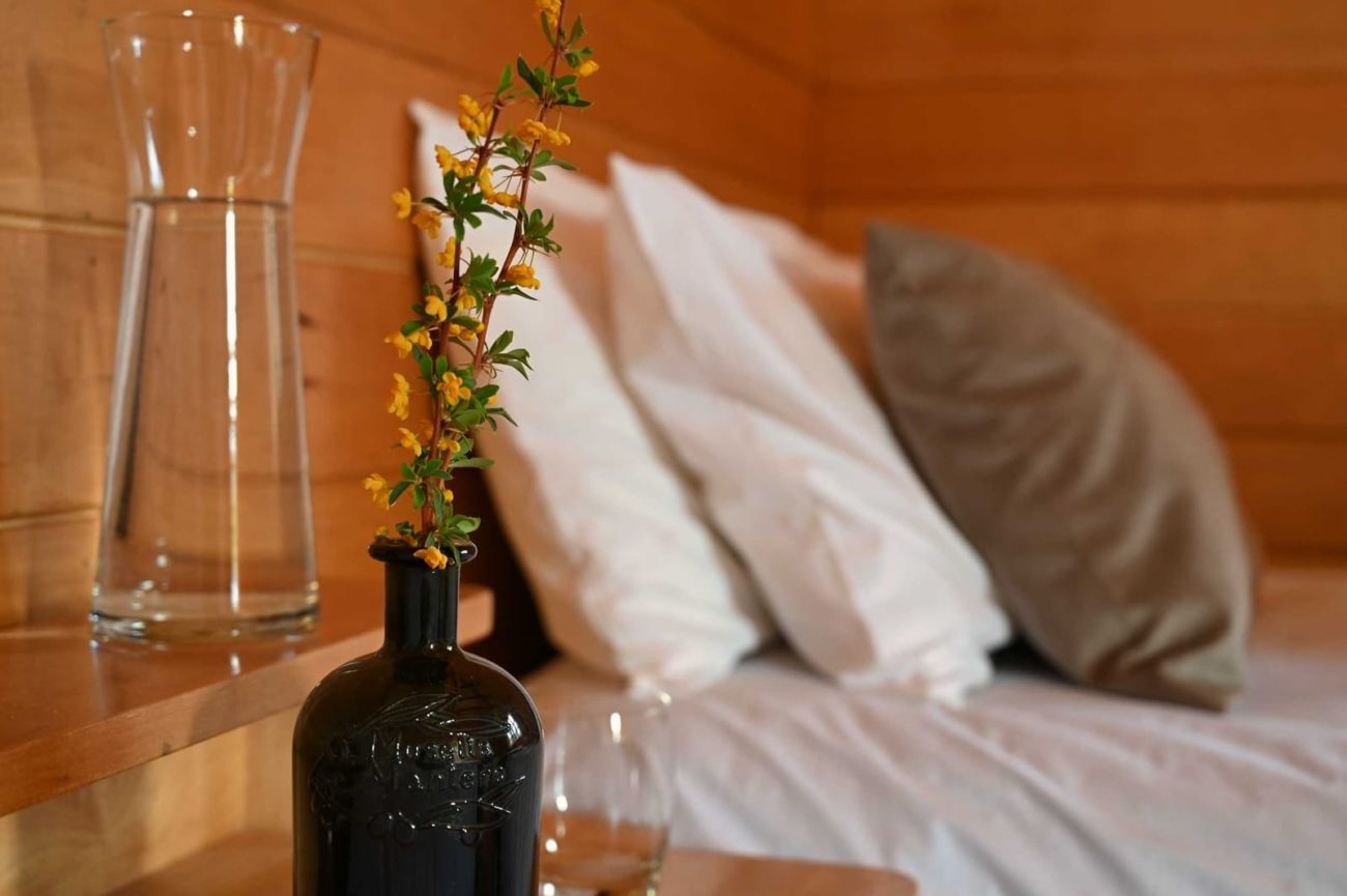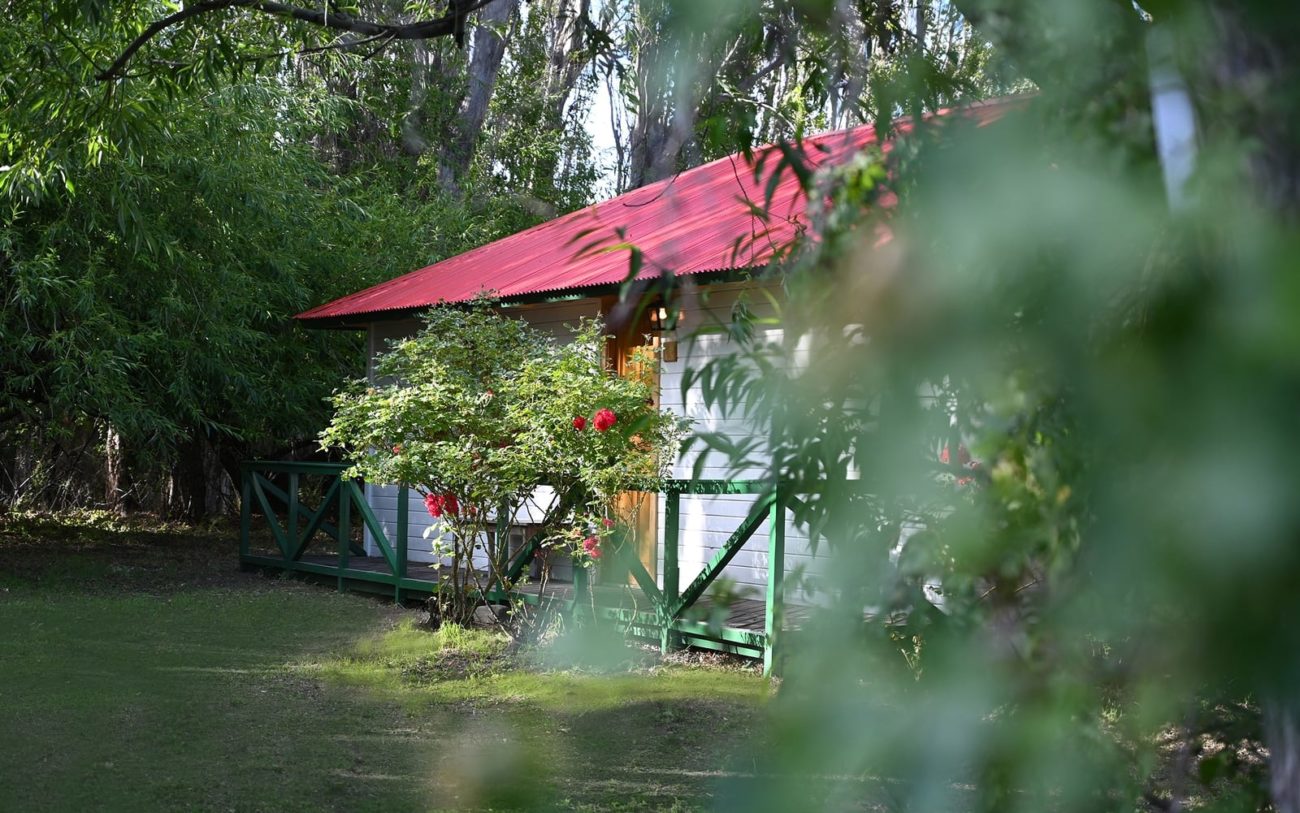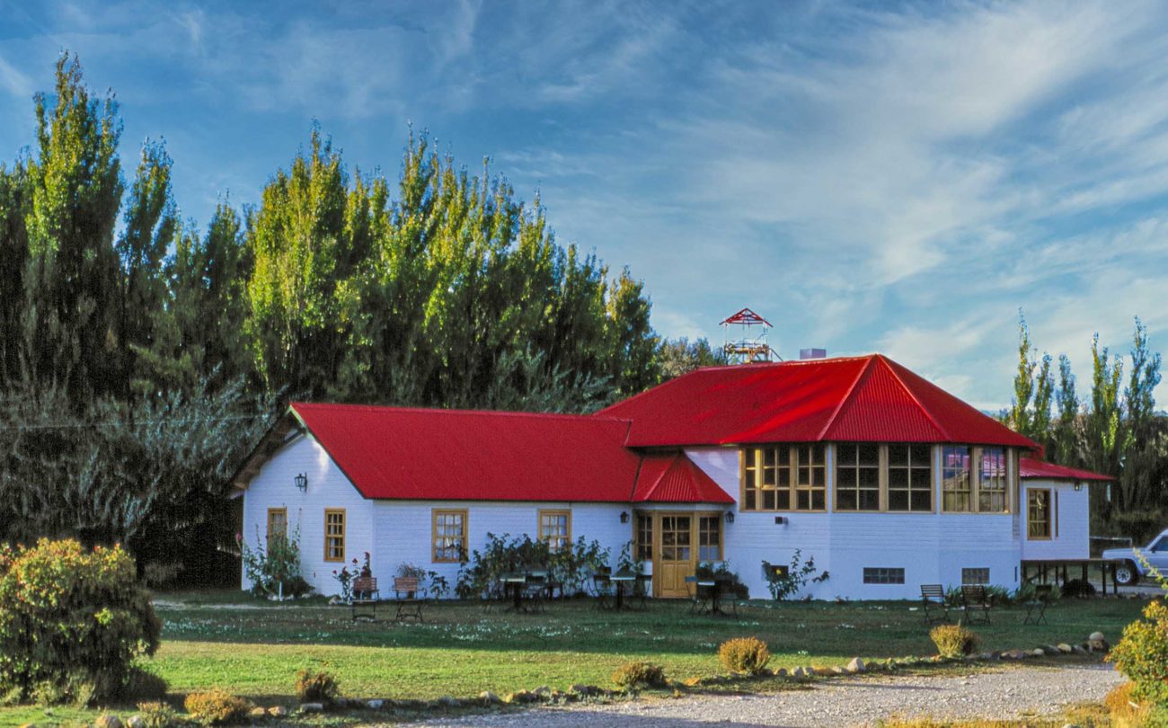Inaugurada en 1993 por Ana Bas y Jorge Cramer, adquirió una reputación que todavía perdura debido a su única ubicación, la esmerada atención de la pareja a los huéspedes y su bodega de vino… Hoy vuelve a abrir después de una temporada cerrada. Con mayor ilusión si cabe. Son nueve casas de huéspedes de madera de lenga protegidas del viento por una cerca de álamos, sauces y árboles frutales.