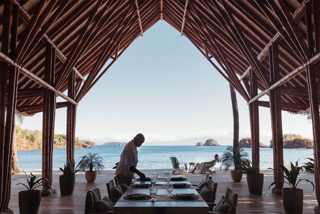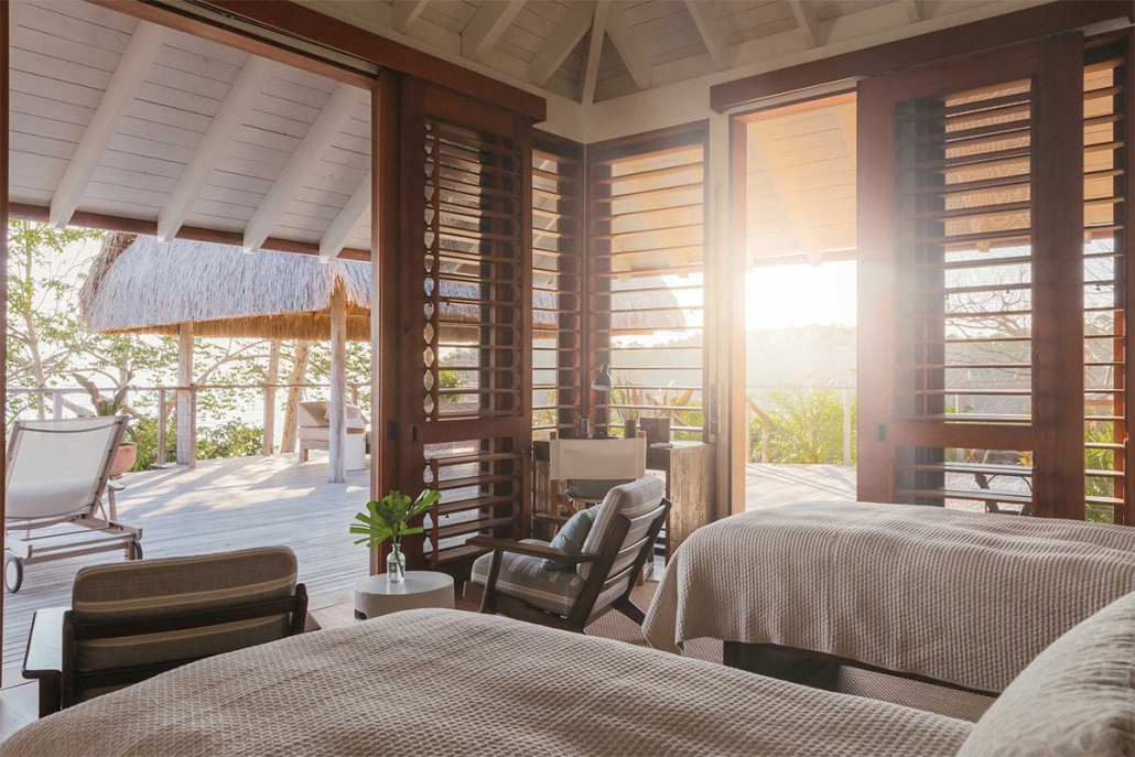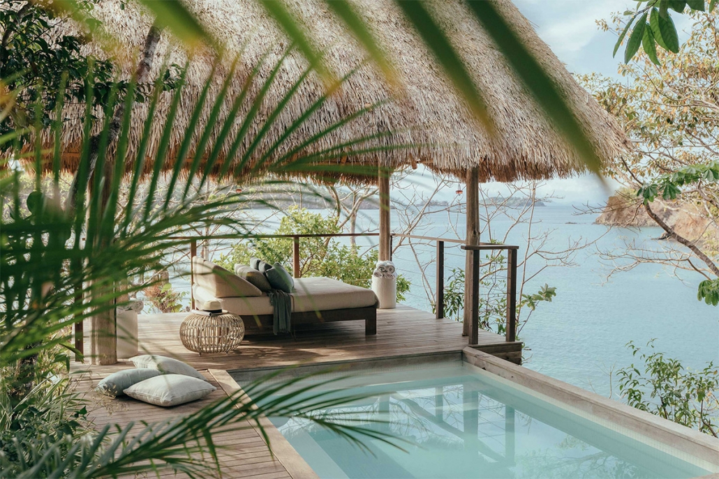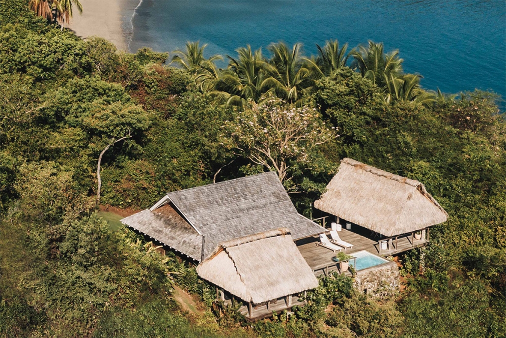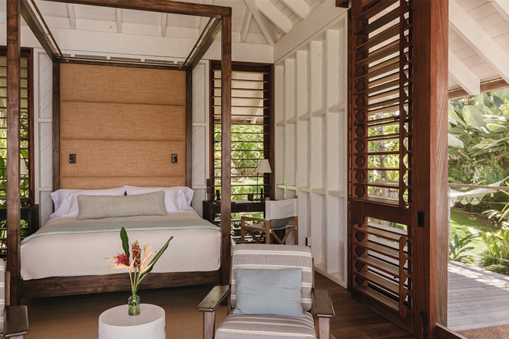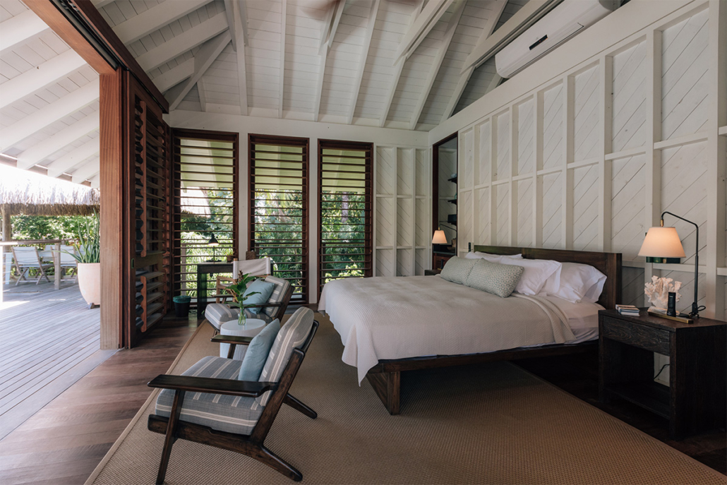 En Islas Secas hablamos de “casitas”, que disponen desde uno hasta cuatro dormitorios. Se abren al exterior a través de una amplia terraza de madera, cuentan con piscinas de diversas dimensiones y el mar se divisa desde la cama, fabricada con madera de teca reciclada. De estilo moderno-colonial, tan habitual en este tipo de resorts, son generosas de espacio y carecen de televisión pero no de conexión wifi, enchufes USB y altavoces Bluetooth. En un cajón encontraremos unos prismáticos para avistar las innumerables especies de aves que visitan las islas, incluidas las fregatas de pecho rojo, que aquí tiene un santuario natural.
