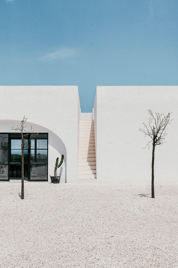 La arquitectura tradicional de los techos abovedados ayuda a protegerse del calor de forma natural y la piedra y la cal se emplearon en la reforma tal como se construían antaño las masserias, que se fortificaban para defenderse de los piratas. Ahora, esta joya defiende entre sus paredes todo lo bueno que atesora la Apulia.