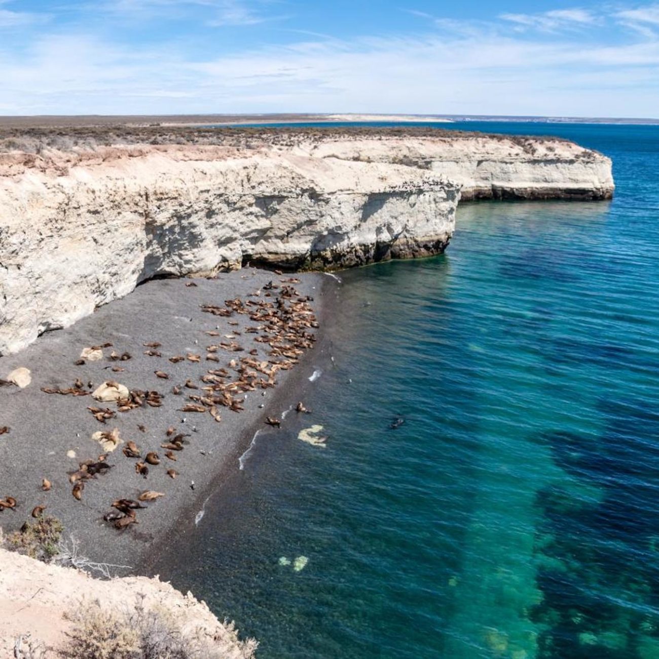 Ligada al continente por el istmo de Ameghino, Península Valdés es uno de los enclaves con mayor concentración de mamíferos marinos del mundo. El polvoriento paisaje es el típico de la estepa patagónica, monótono y llano, y así todas las miradas se concentran a orillas del mar. Conectadas por carreteras asfaltadas o de ripio (tierra), se reparten por su litoral sus abundantes colonias de lobos y elefantes marinos (Punta Norte, Caleta Valdés, Punta Cantor y Punta Delgada).